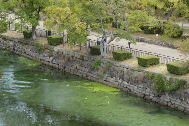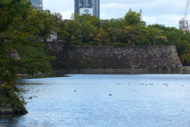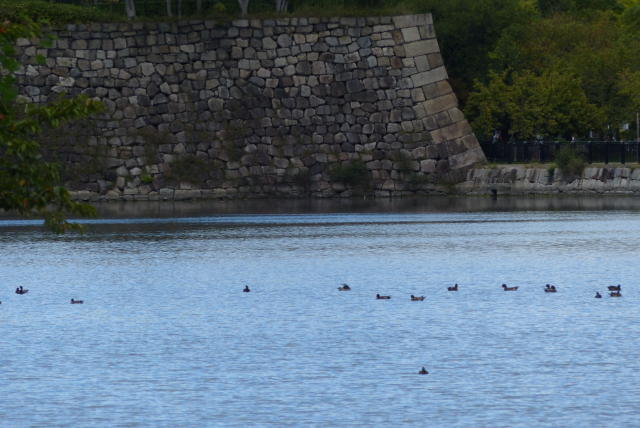 玉造門に至る堀端でもカモ類は、ハシビロガモ、ヒドリガモ、マガモ等だけで